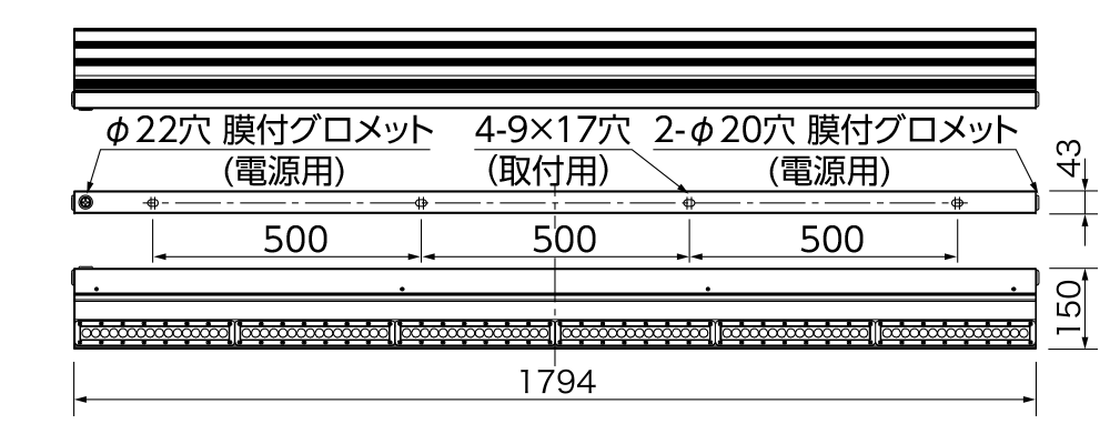 | 口出線 | ラバーシースケーブル(器具外750mm±100mm) |
