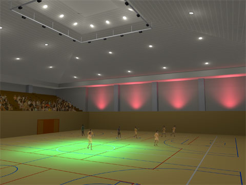 競技大会などが行われる体育館施設などで、開会・閉会式や表彰式など場面の切替えや催しを盛り上げたい場合に使用します。競技時間に合わせて開始・終了時間やハーフタイムに色を変えるなどのプログラムがあると実用的です。