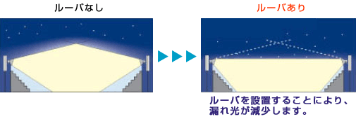 スポーツ用投光器で問題とされる、競技場の外部に漏れる光。そのため岩崎電気のスポーツ照明には、上方光束を遮光するルーバをラインアップしています。必要灯数を変えることなく上方光束を低減します。