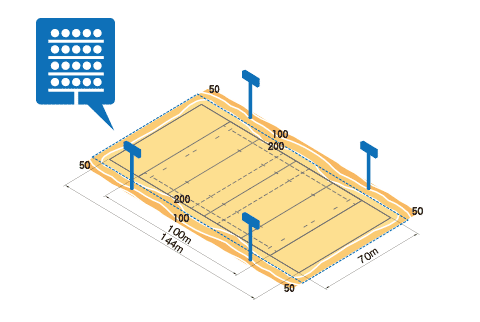 陸上競技場及び兼用競技場(陸上、サッカー、ラグビー)の配置