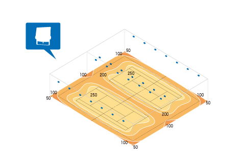 ※上の照度分布図は、維持値を示します(単位:ℓx) 保守率:0.83