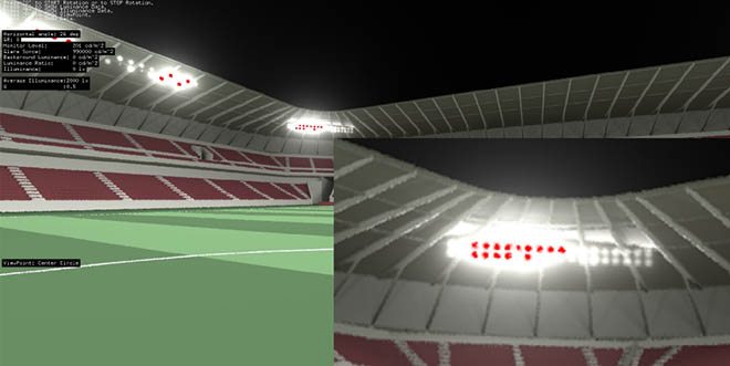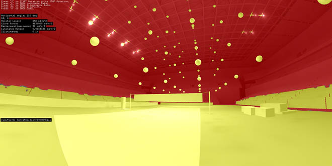 任意の輝度値以上の照明器具を色付けでき、プレーの妨げになる直視グレアの有無を検証できます。