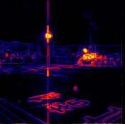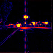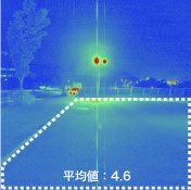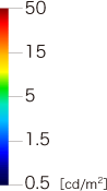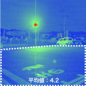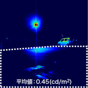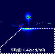 LED投光器を設置したご提案例を従来形の水銀ランプ投光器と比較すると、輝度分布画像、明るさ画像の値から、同等のレベルであることが判りました。
