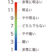 クオリアイメージに変換してみると、ご提案照明は、従来形照明と変わらない明るさを確保しています。