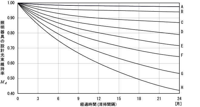(参考文献 (一社)照明学会:技術指針JIEG-001 照明設計の保守率と保守計画 第3版(2005))