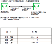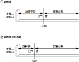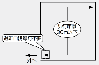 主要な避難口を容易に見通し、かつ識別できる場合でその歩行距離が下図の時以下の場合は設置は不要です。