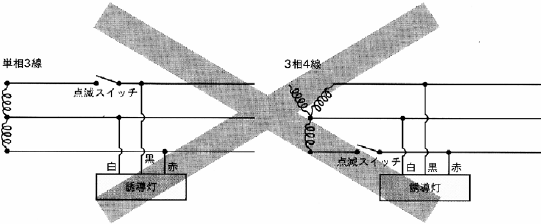 3線配線方式の場合、機器を損傷するおそれがありますから、図11.14のような結線は行なわないでください。