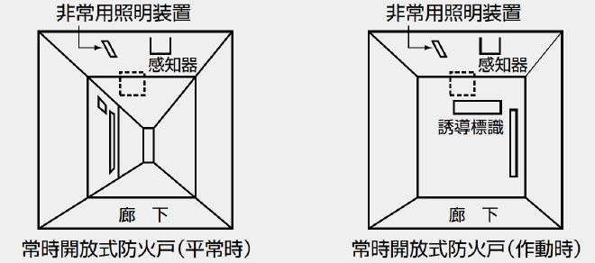 - 避難口から避難する方向に設けられている火災報知設備の感知器が作動したときは、当該避難口に設けられた誘導灯の点滅及び音声誘導が停止すること