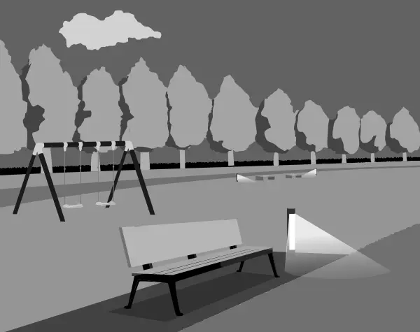 樹木により遮光される道路灯や街路灯の光を高さ約1mから補完し、暗がりのない安心できる歩行者空間を実現します。