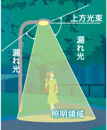 - 照明器具から照射され、その目的とする照明対象範囲外に照射される光。