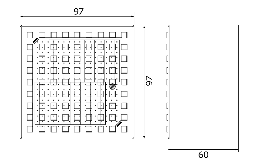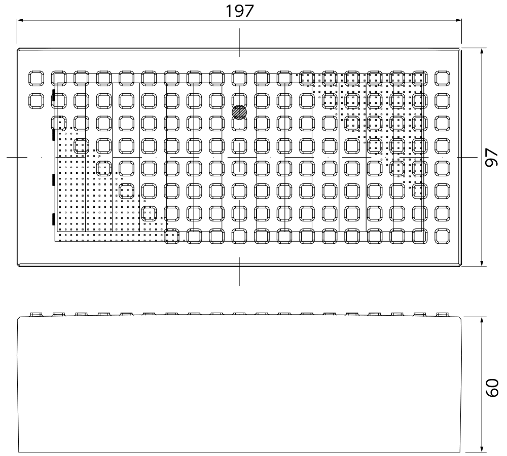 角型のコンパクトタイプ。インターロッキングブロックの約半分のサイズで設置が容易です。