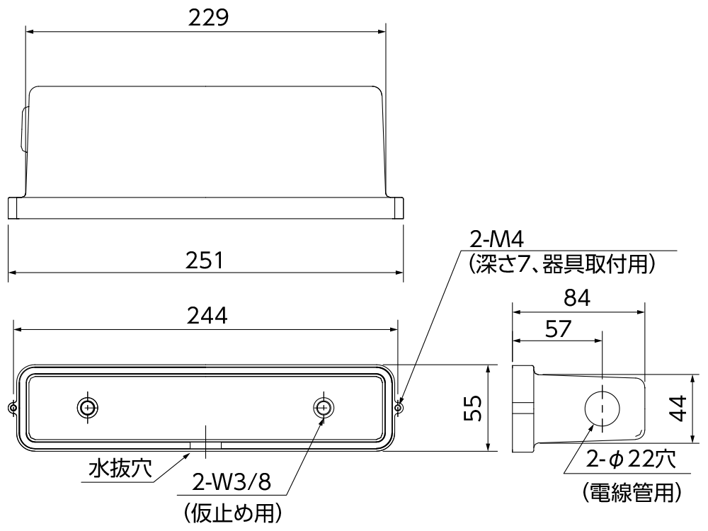 - ※器具取付けの際は、枠と壁面にコーキングなどしないでください。水抜穴が塞がれ、絶縁不良、腐食の原因となります。
