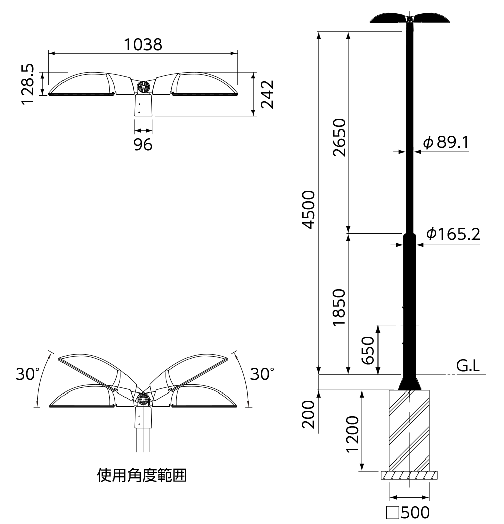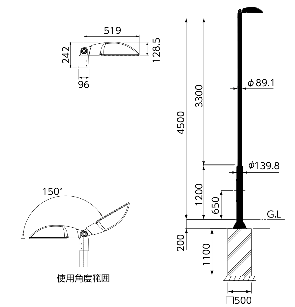 | 適合ポール | 収納可能ポール内径ø105.3(4B)以上 |