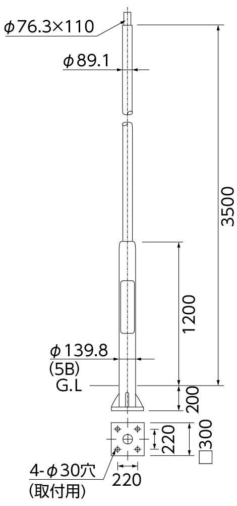 | アンカーボルト(別売) | ANC242250 (埋込ベースプレート式用) |
