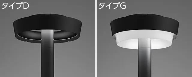 レディオック エリア クオリスは“周囲環境が見やすい”かつ“空間が明るく感じられる”ことを達成するための配光制御を行っています。駅前広場や商業地域などの周囲が明るい環境向けのタイプDと、住宅地域や郊外の公園などの周辺が暗い環境向けのタイプGをラインアップ。また、所要照度に応じて、各タイプ共に2種類の明るさをラインアップしています。