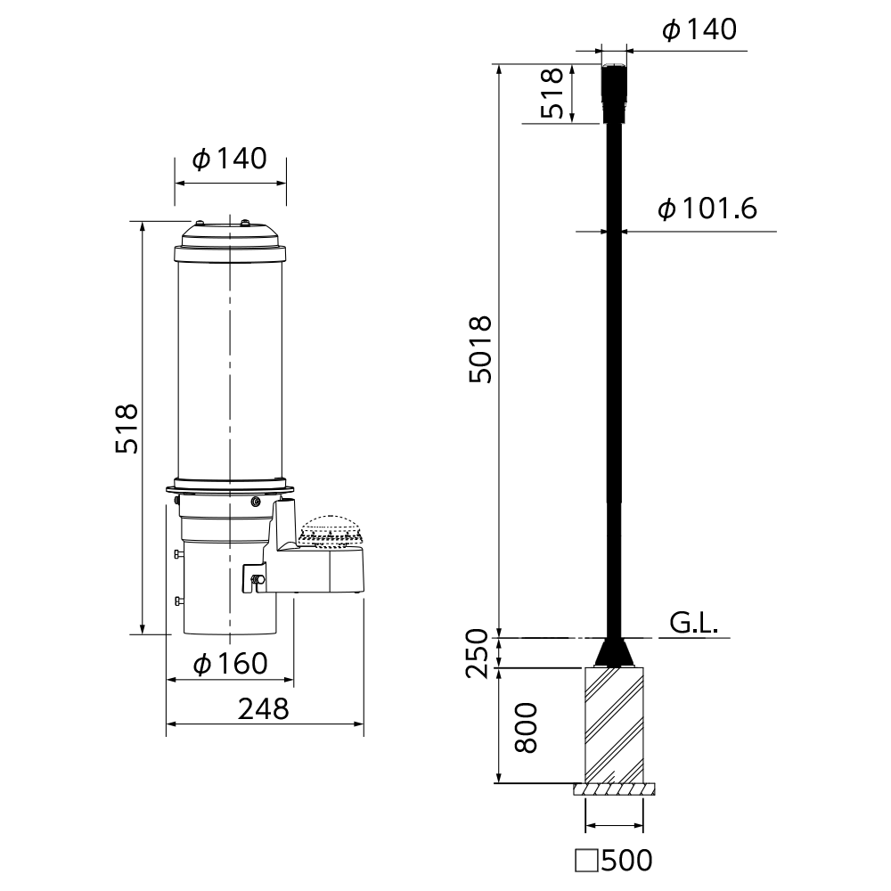 ※既設ポールをご使用の場合は、施工前に開口部の大きさをご確認ください。