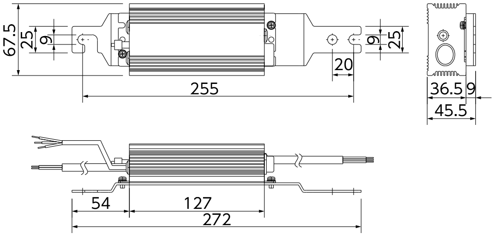 | 口出線 | 650mm(入力側)、230mm(出力側)、310mm(調光線、調光形のみ) |