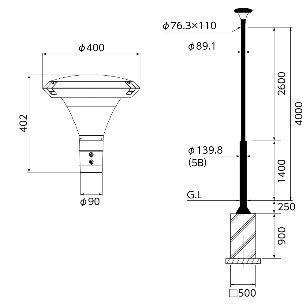 - ※アルミポール、カラーポール、ローリングポールは適合しません。落下のおそれがあります。