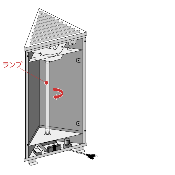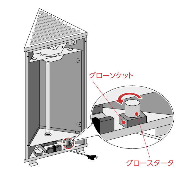 ※ランプを無理に外すと、ランプ破損やソケット破損の原因となります。ランプが破損した場合、飛散したガラスでけがの原因となります。