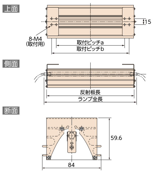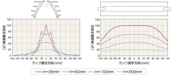 広い面積でも照射が均一になるよう、岩崎電気が長年培ってきた光技術をいかした、独自の反射板設計を採用しています。