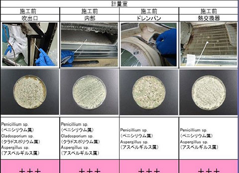 施工前で採取した同じ1か所を採取し、効果を確認します。この検査を基本とし、その後の変化を観察検証します。