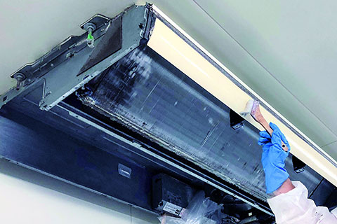 主に吹出口、ドレンパンなど空気の通り道を防カビ抗菌塗装します。