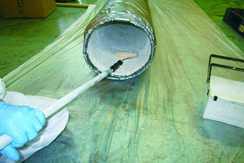 世界初の特許工法。空調ダクト(鉄板、SUS、アルミ、グラスウールなど)、チャンバーBOX内面を防カビ抗菌塗装します。