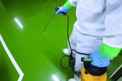 除菌剤を刷毛やローラーで塗布し、微生物と摩擦接触させ確実に除菌します。