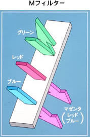 種類としては、イエロー(Y)、マゼンタ(M)、シアン(C)の各フィルターがあります。