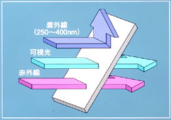 250nm~400nmの紫外線を反射し、可視光及び赤外線を透過するミラーです。