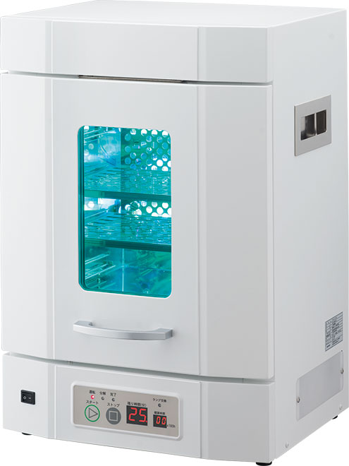 高圧水銀ランプを光源とし、高レベルな殺菌を行える省スペースタイプの装置です。