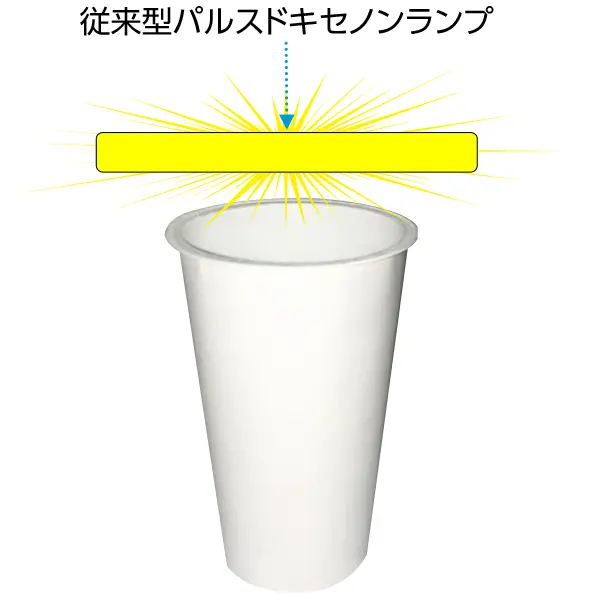 ランプのパルス光による殺菌のため、薬剤を使用しないクリーンな殺菌