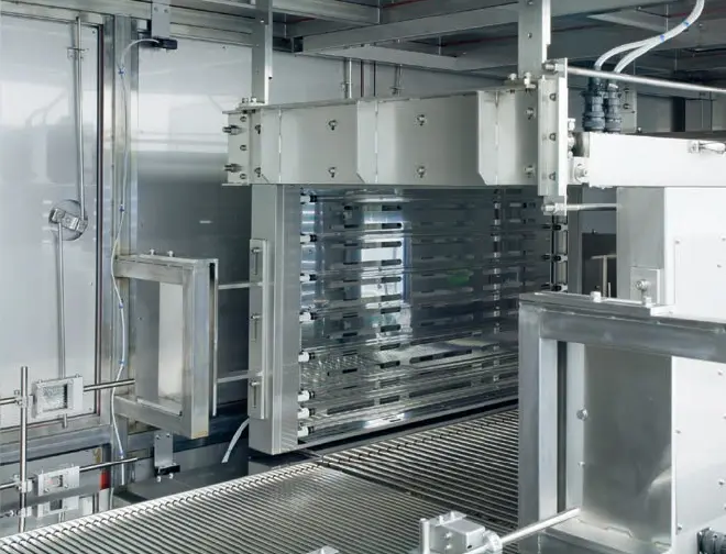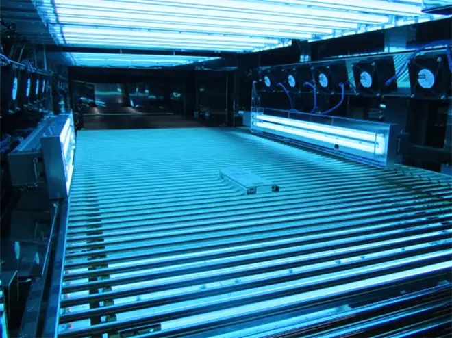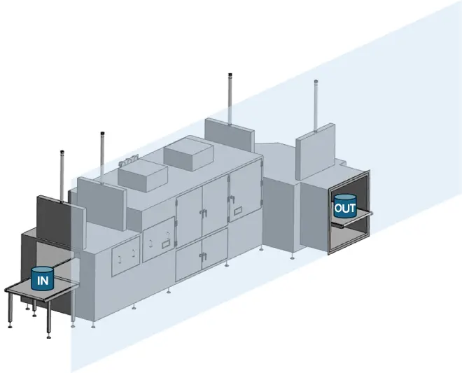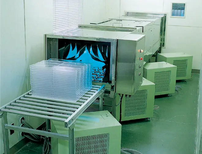 (資材のクリーンルーム搬入時の両側面、上下照射による外装の除染)