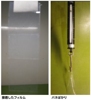 - 接着面積は25mm×20mmとし、バネばかりにて引張剪断強度を評価した。