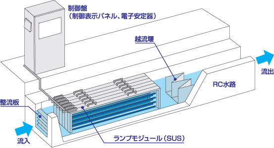 下水道の消毒や農業・漁業集落排水の処理に最適な紫外線消毒装置です。