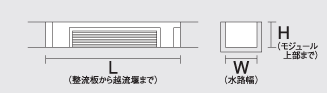 | 処理場の規模(m³/日) | ランプ数 (本数) | 段数 (本/セット) | モジュール数 (セット) | 水路数 | 寸法 L×H×W(mm) | 消費電力 (kW) | 形式 |