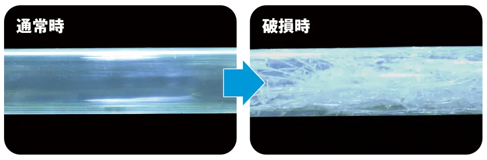 ランプスリーブへのフッ素樹脂被覆により、破損時にガラス片が飛び散る心配がありません。