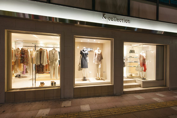ケイコレクション福岡天神西通り店は、トゥルー トラサルディ スティーレとオースチンリードの2つのライセンスブランドを展開するショップです。ショップ作りのテーマは、高感度でクラス感のあるウェアを引き立たせる、こだわりのある上質空間です。当店は、賑わいのある福岡・天神に位置する路面店で、2013年3月にリニューアル工事を実施し、店舗を一新しました。