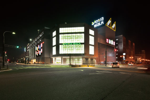Myリストに追加ヴェルサウォーク西尾は、愛知県西尾市の名鉄西尾駅前、ファミリータウンミカ跡地に2014年3月、グランドオープンしたサーキットモール型ショッピングセンターです。ユニー株式会社が全館を運営し、アピタ西尾店を核店舗に充実した専門店が揃い、「暮らしやすい駅タウンの再生」を目指した新世代型ショッピングセンターとなっています。店舗は鉄骨構造地下1階地上5階建てで、敷地面積約23,000m²、延床面積約65,000m²という規模を持ち、地下・4・5・R階には駐車場があります。ヴェルサウォーク西尾では、電気自動車充電スタンドや太陽光発電パネルを設置するなど、環境に配慮した店づくりを推進していて、全ての照明にもLEDを使用。3フロアをまたぐ大きな吹き抜けが特長となっているヴェルサコートの天井部分にはLED高天井用照明器具レディオック ハイベイ ラムダが、正面玄関のカーテンウォール照明にはコンパクトなLED投光器レディオック フラッド ネオが、また屋上駐車場にはLED投光器レディオック フラッド ネオとレディオック シーリングHBを組合せた照明ポールが設置されるなど、場所に応じて適切なLED照明を採用いただき、省エネに貢献しつつ明るく快適な照明環境をつくり出しています。