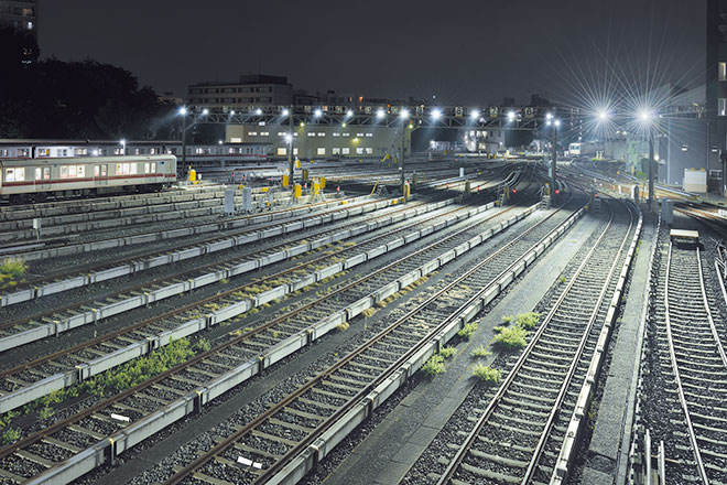 中野車両基地については、2017年3月にLED化を実施しました。既設水銀ランプ250W投光器に替えて、LED投光器「レディオック フラッド スポラート 65Wタイプ」を設置。また、場所に応じてLED防犯灯「レディオック ストリート 40VA」も使用し、既設照明と同等の明るさを確保しつつ、省エネ、省メンテナンスにも貢献する照明環境としました。