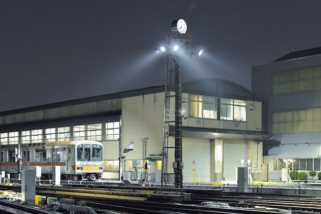 LED照明に更新後の消費電力は半分以下になり、消費電力の大幅削減を実現しつつ、夜間も車両基地を明るく照らして安全性の向上に寄与しています。
