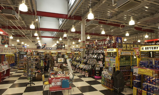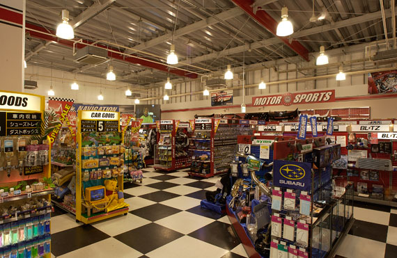 充実したカーライフをサポートする店舗空間を照らし出す高品質な光