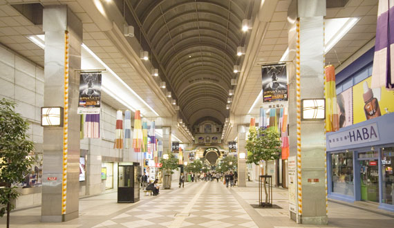 省エネを実現しつつ、演色性に優れた光でアーケードを照らし出す