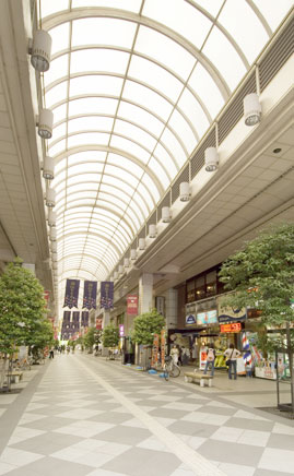 Myリストに追加サンモール一番町商店街では、1986年に完成したアーケードの老朽化に伴い大規模なリニューアルが行われました。光源には、それまで使用していた水銀ランプ・白熱電球などからセラミックメタルハライドランプ“セラルクスTD”(両口金形)やHf蛍光ランプを採用することによってCO₂の排出削減を大幅に実現しました。演色性に優れたセラルクスの光は、アーケード全体をより明るく包み込み、お客さまにも快適にショッピングを楽しんでいただけます。
