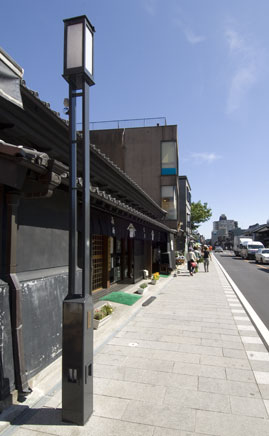 Myリストに追加趣のある蔵造りの建物が並ぶ川越一番街商店街は、国の重要伝統的建造郡保存地区にも指定され、風情豊かな町並みが広がっています。電線類を地中に埋め込み、ポールの高さを低めに設定するなど景観には十分に配慮されていると同時に、建物側へのあかりはライトアップの役割を持たせアクリルパネルの透過率を高く設定されています。