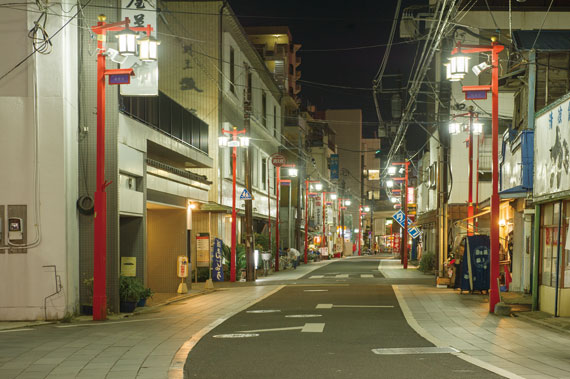 古くから親しまれてきた商店街の照明柱をランプ・安定器の交換だけでLED化し大幅な省エネを実現