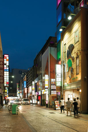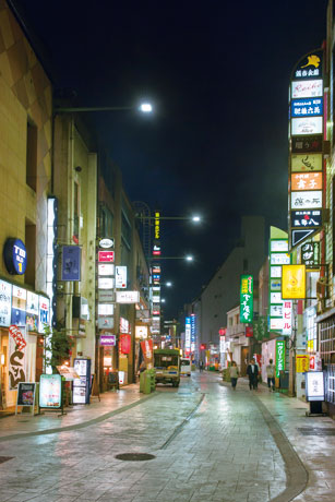 熊本を代表する飲食街のひとつとして賑わう通りを省エネに貢献するLEDのあかりでより魅力的に照らし出す