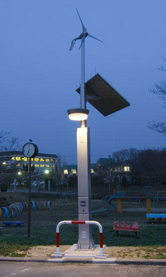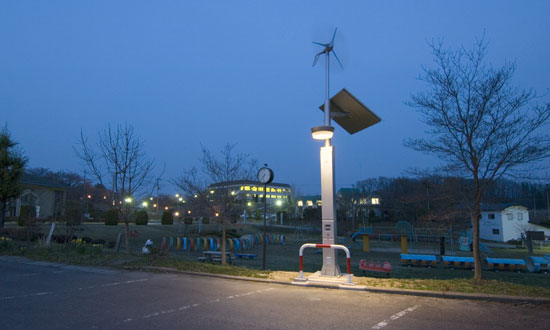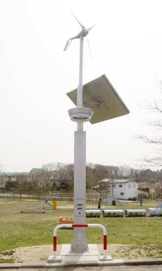 Myリストに追加福島県の緑豊かな本宮市白沢地区にある、しらさわ夢図書館前にハイブリッド太陽灯“アイバード”を設置しました。太陽光と風力を併用し、発電したエネルギーを使って効率よく夜間照明を行っています。太陽発電量・風力量がすぐにわかる表示板も備え、より省エネを意識し、防犯灯としての役割を果たしています。