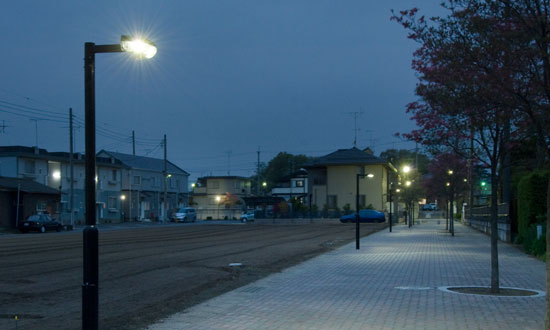 Myリストに追加JR水戸線結城駅の南部地区においては、「快適で安全なゆとりある住環境整備による人口定着と地域の連携による都市活力の創造」を目標に区画整理事業を進め、4地区を繋ぐ形で整備された歩行者専用道路に、LED照明を用いた街路灯を設置しました。近接住宅への光害にも配慮しながら、省エネ・長寿命などを特長とするLEDを光源に採用しました。歩道は総延長2.9kmあり、今回は851mについて整備したものです。