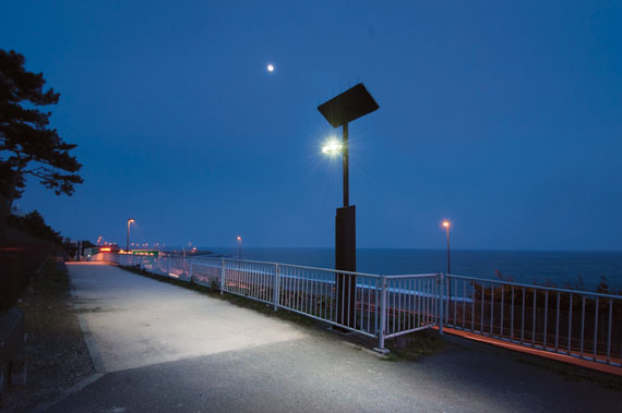 海辺のサイクリングロードを安全に照らすLED太陽灯